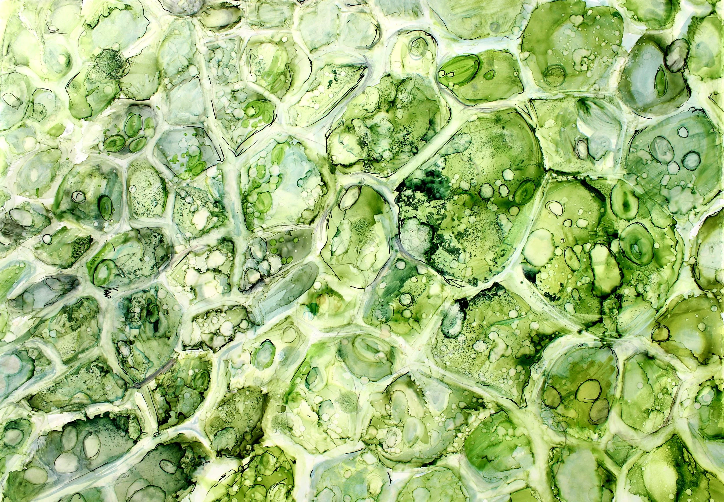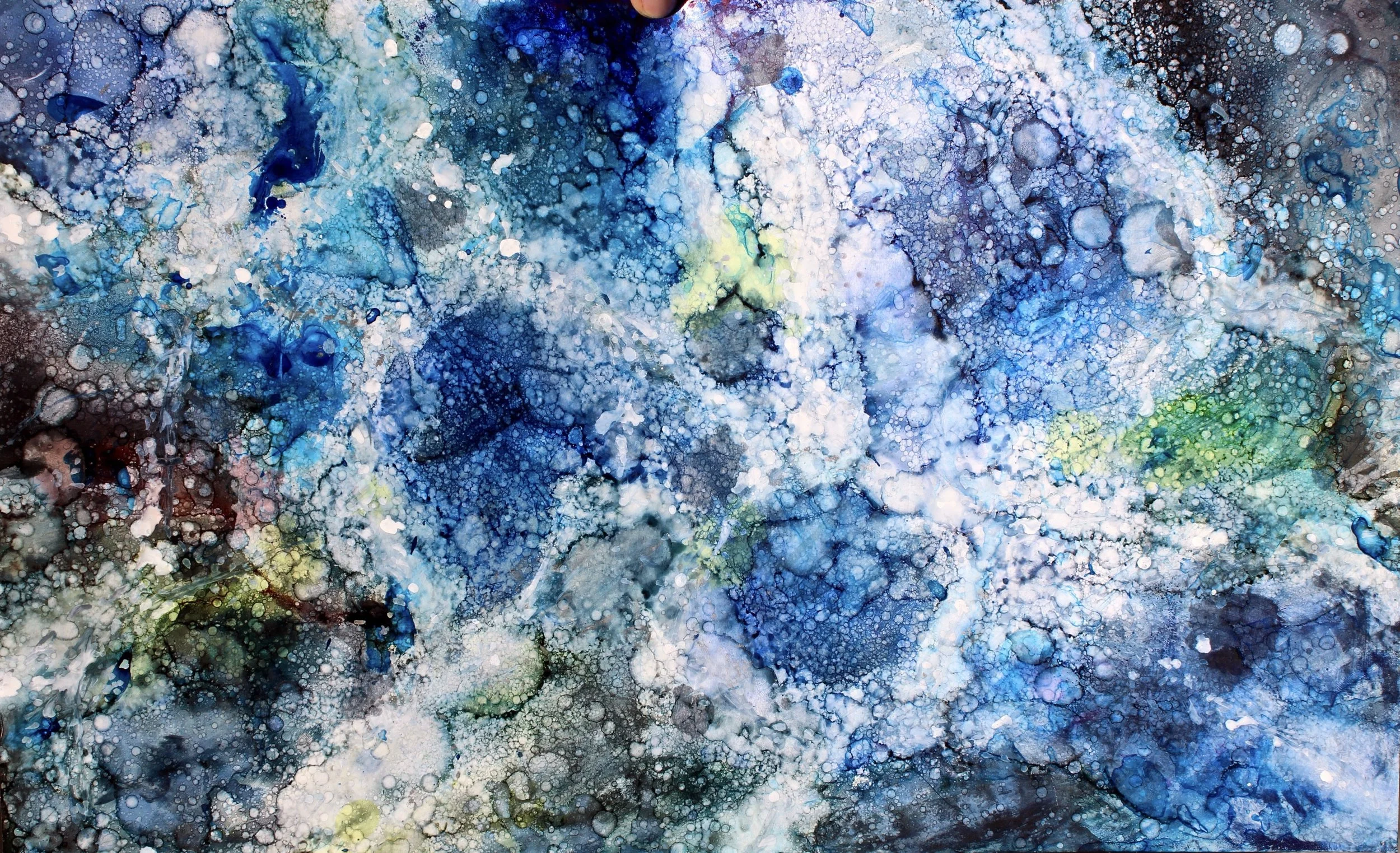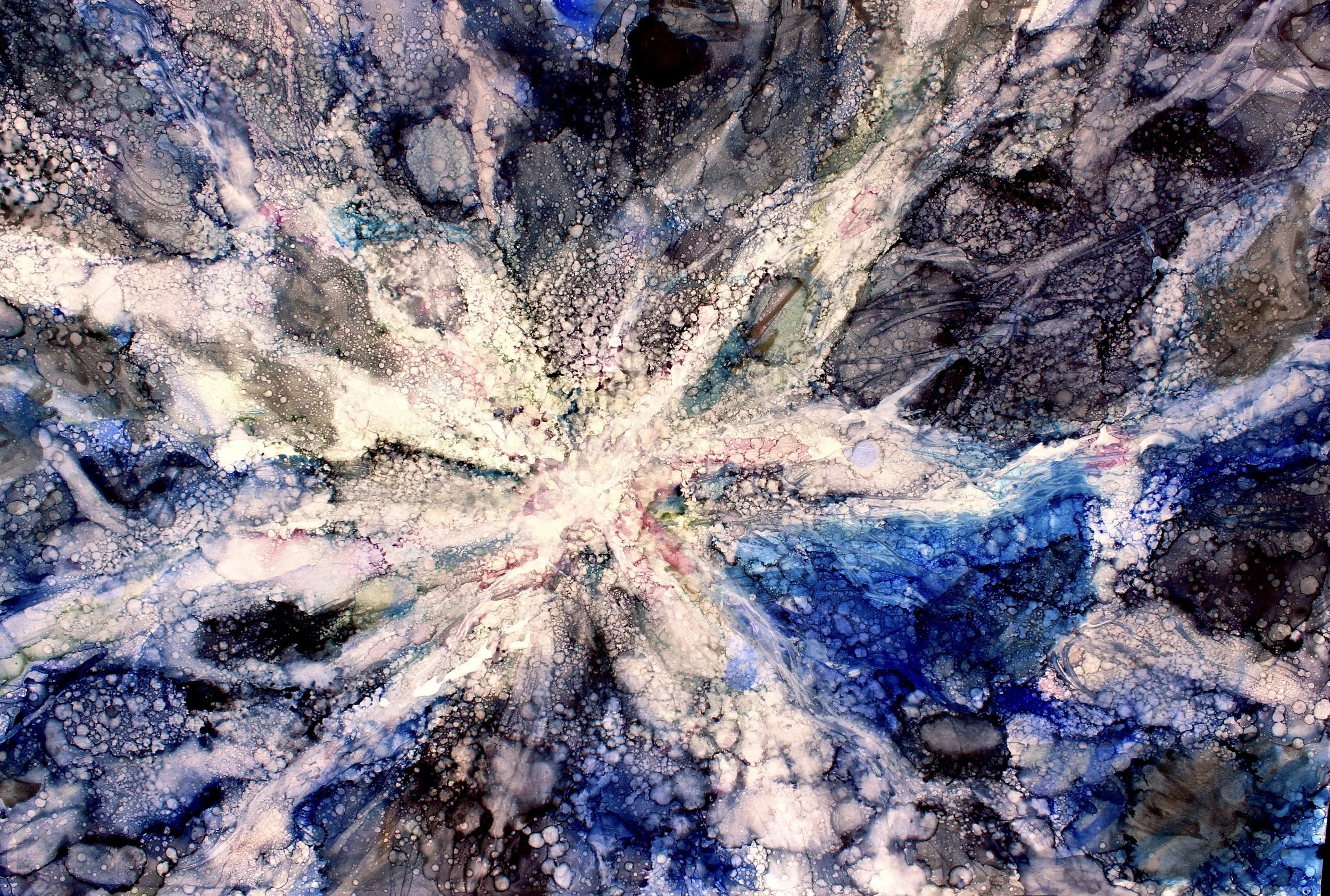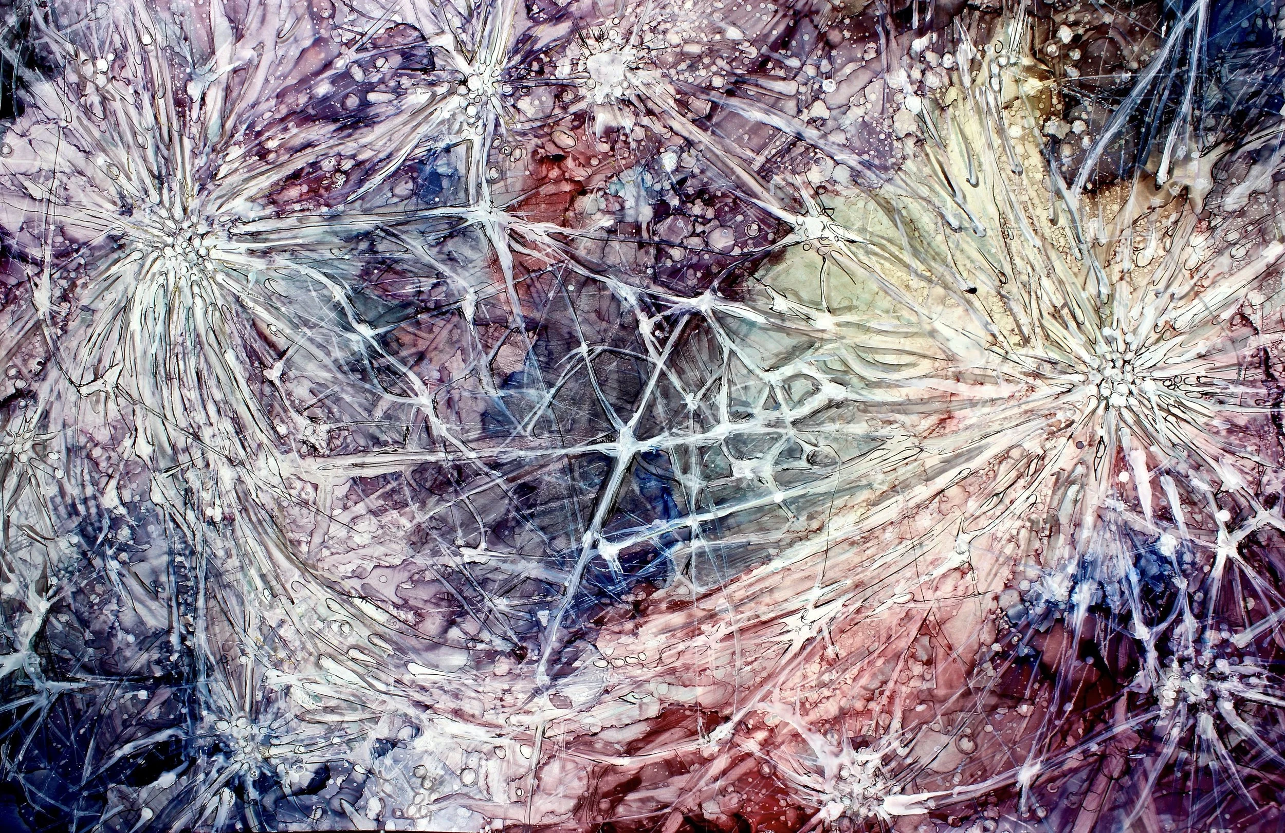 Medium used is alcohol ink and acrylic marker on yupo paper. Reference is plant cells, neural networks, and different views of certain galaxies at varied scales.
